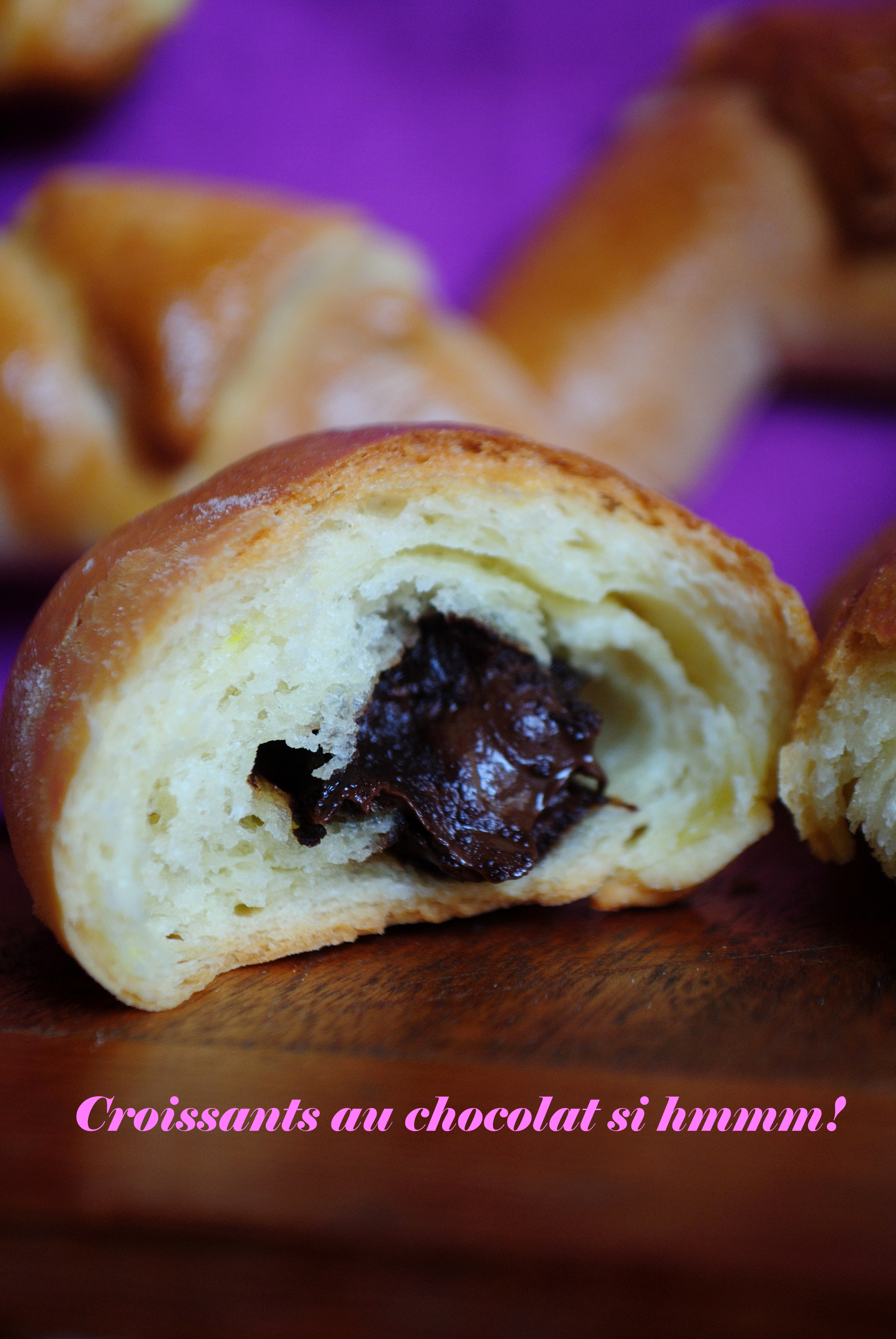 Quoi de mieux que de se lever le matin (ou pour le souhour actuellement,le repas de la nuit d’avant jeûne) et de trouver ces petites viennoiseries briochées débordantes de chocolat,hmmm?