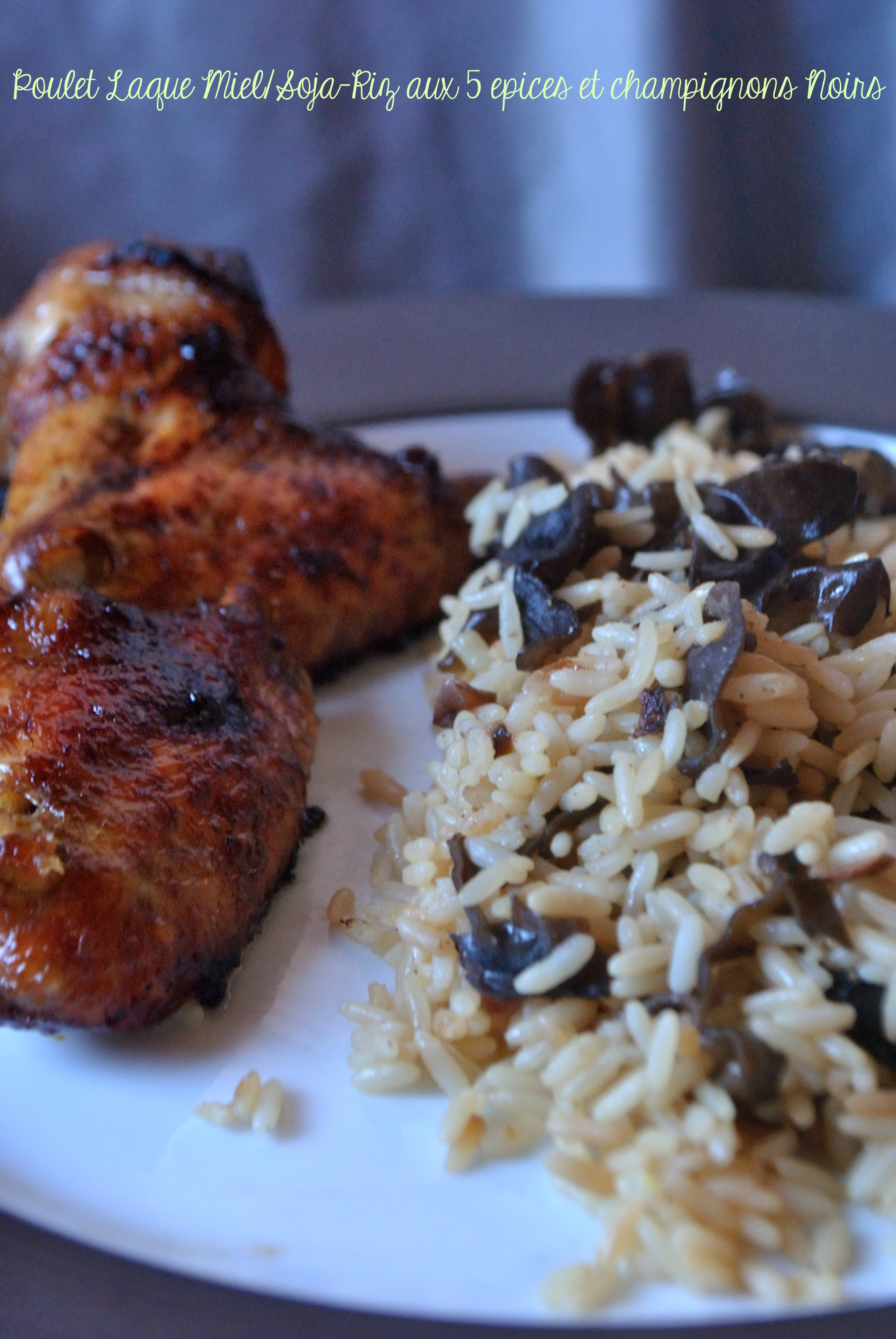 Menu asiatique express : Salade asiatique Riz pilaf aux champignons noirs et 5 épices,Ailes de poulet laqué miel/soja