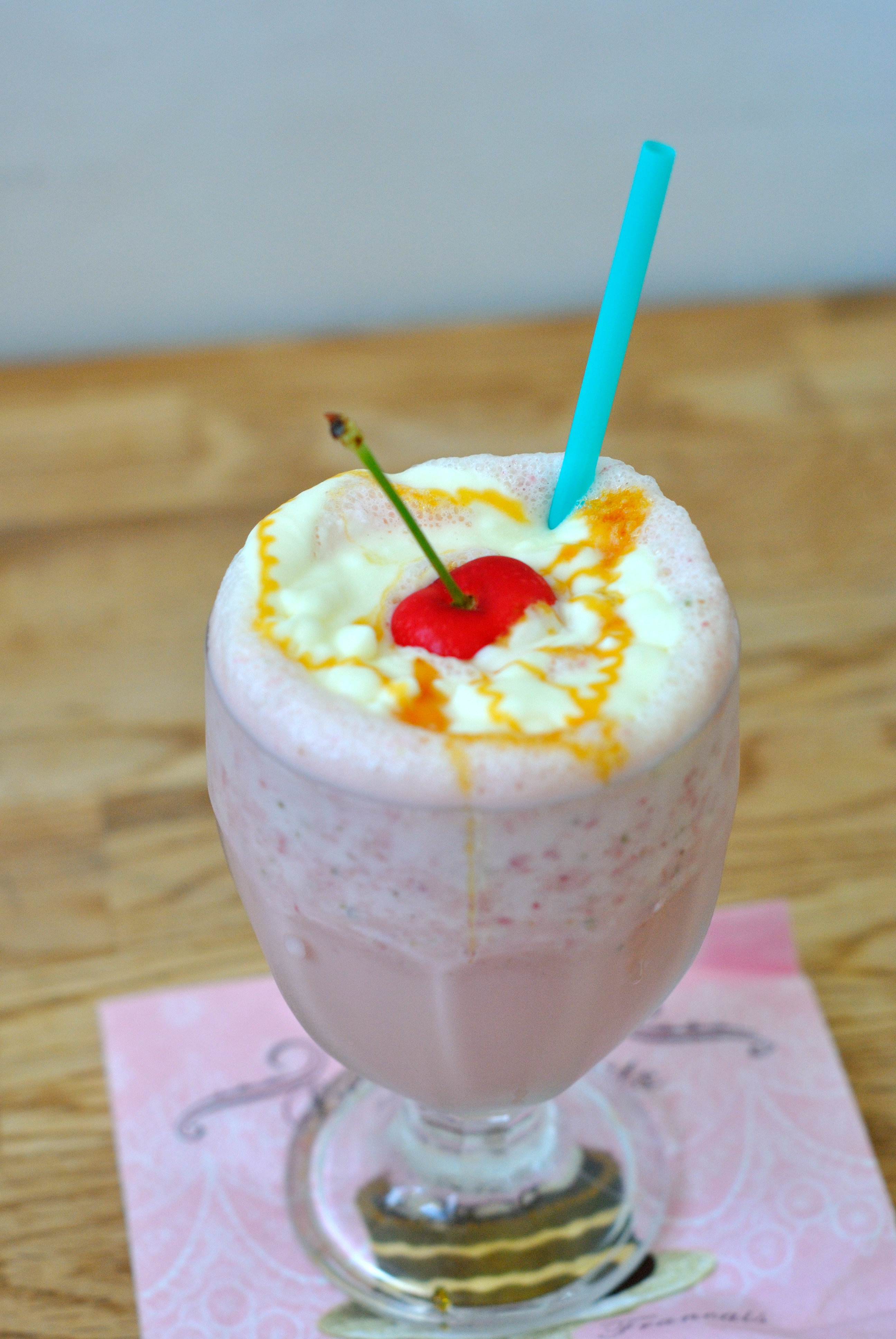 Parfois je me dis que j’aurais été parfaitement à mon aise,dans l’Amérique des 60’s.La housewife,dans sa cuisine équipée,une chevrolet rouge dans le garage,un shake et un burger au diner (prononce dayneur) du coin.Bon je n’en suis pas trop loin.Enfin pour le côté housewife du moins.Pas de chevrolet (voiture tout court),pas de diner par ici.Bref c’est un peu mon rêve secret (enfin plus trop maintenant) de me téléporter,et de tremper mes frites dans mon milkshake. Oui. Chacun ses rêves.Donc j’ai ramené l’Amérique dans ma cuisine,et OMG,LOL,TMI…(n’importe quoi ^^),le meilleur shake que j’ai bu de ma vie (au moins)