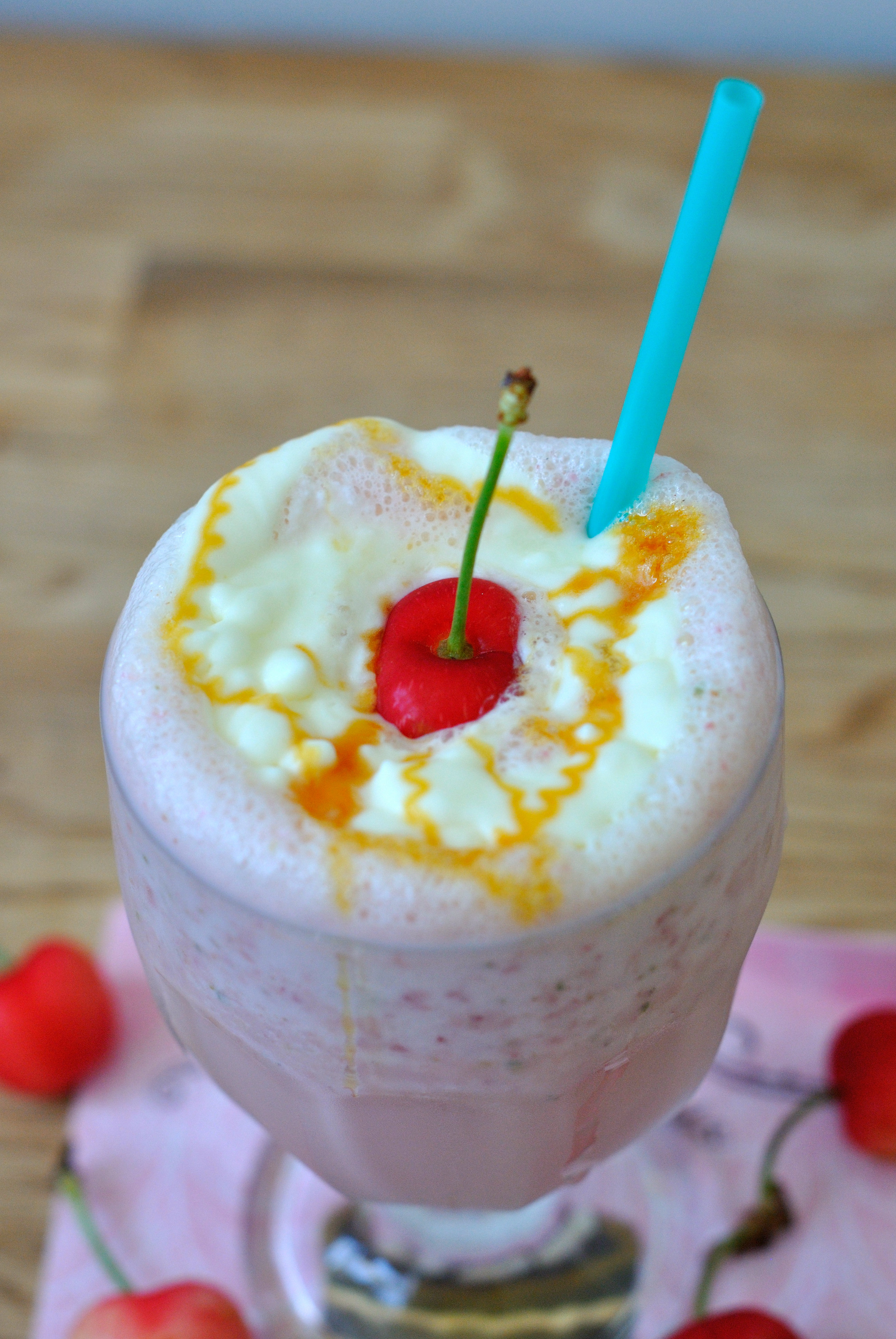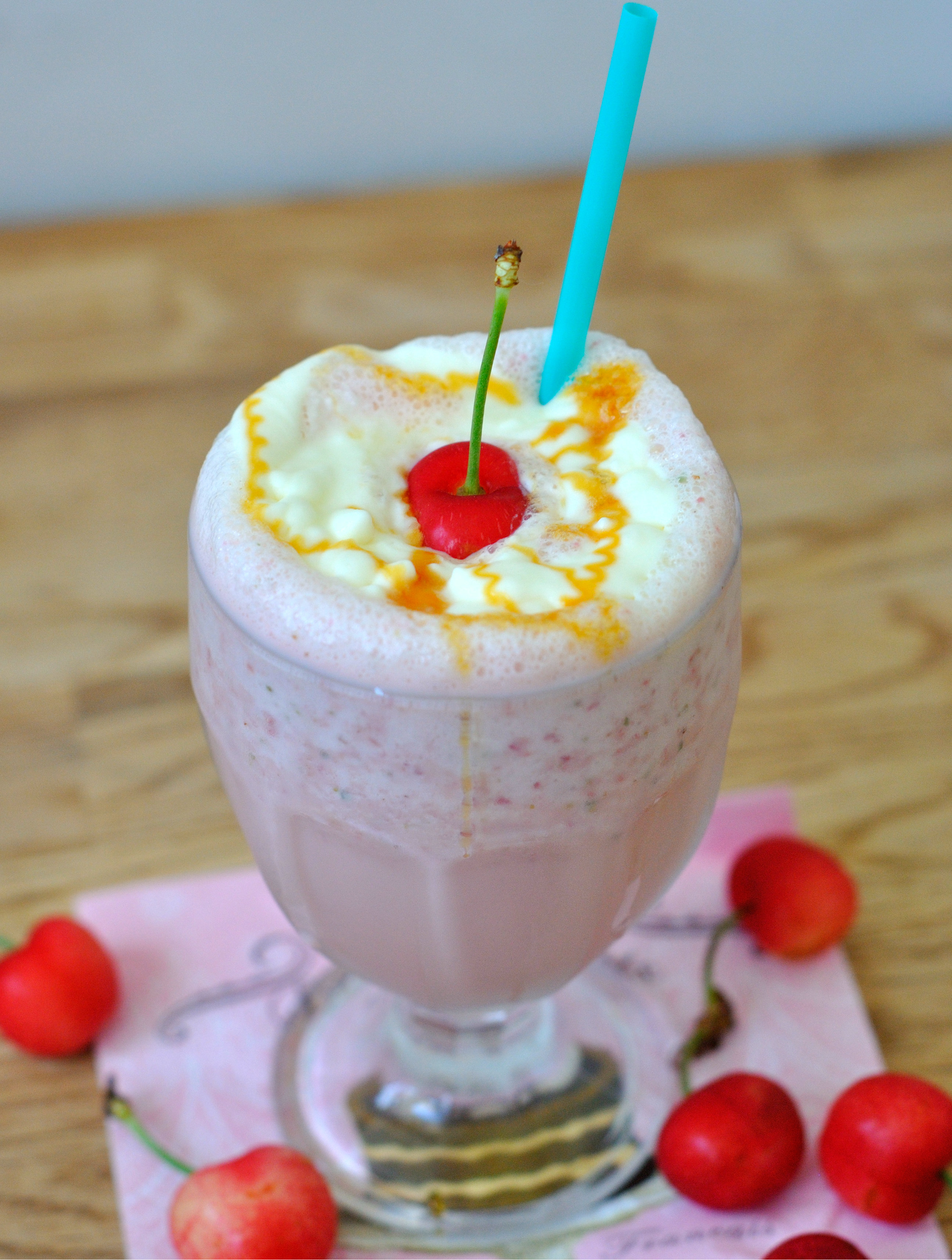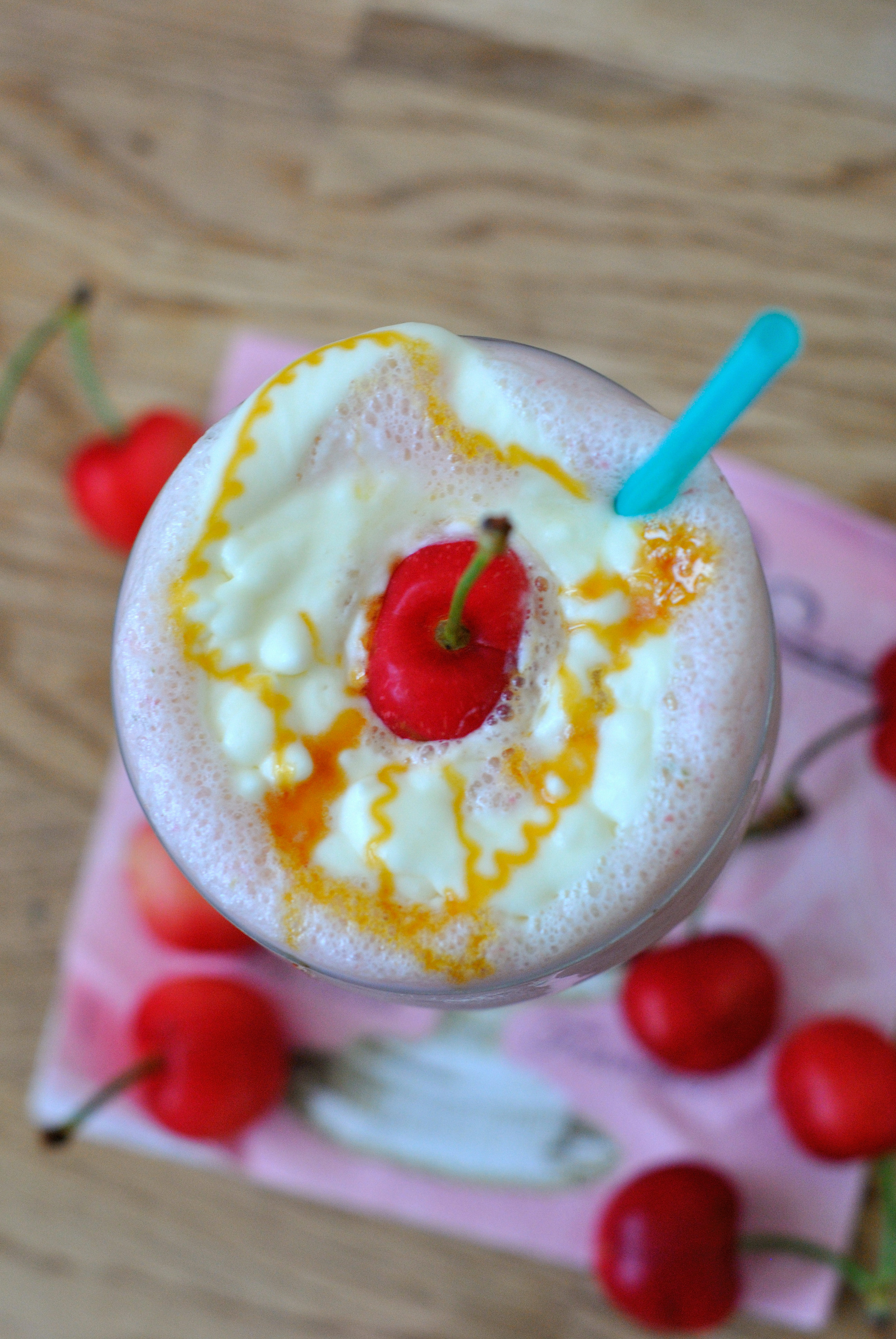 Tu passes tout au blender.Tu montes ta chantilly.Tu déposes dans un verre,chantilly au dessus,tu termines par une cerise.Happy Days.Mouarf.