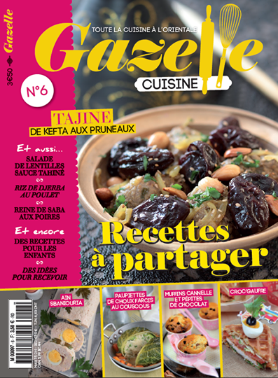 Vous pouvez retrouver 14 de mes recettes dans le dernier Gazelle Magazine,si cela vous dit chez votre buraliste habituel,au prix de 3euro 50 pour 100 recettes plus qu’alléchantes et conviviales!