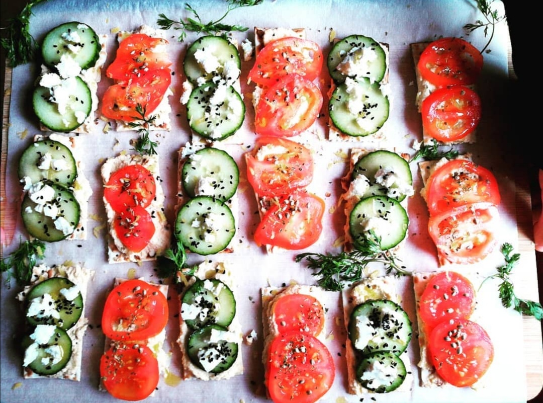 Et le houmous que tu as fait dans la publication précédente, te permet en 5 minutes de poser ce genre de tartines devant tes invités de dernière minute.
