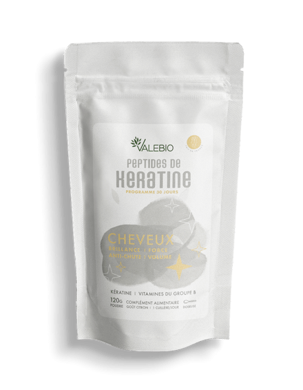 Chez VALEBIO mes chouchous, la base à avoir : la vitamine C liposomale, leur collagène ( neutre si tu veux en mettre un peu partout pour un apport en protéine supplémentaire et pour réparer tes intestins) : et qui ont une bête de produit tout nouveau à base de Kératine et complexe de vitamines B naturelles pour avoir des cheveux de rêve !
