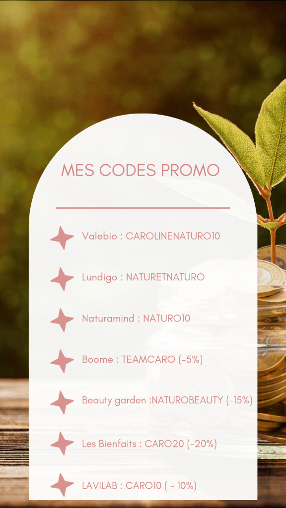 Pourquoi cadeau ? Parce que dans chacune des boutiques où je t’explique quel produit te procurer pour débuter un chemin vers une meilleure santé, j’ai un petit code promo ( même si ce ne sont techniquement pas des partenariats) et ça ça fait toujours méga plaisir.