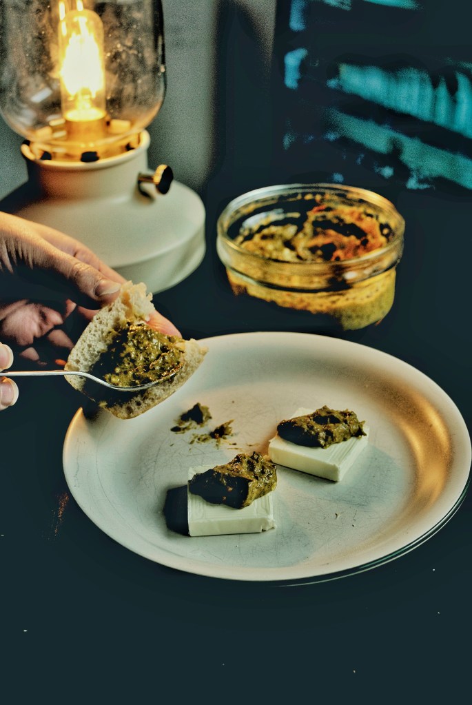 - Ajouter les piments, l’ail et l’huile : Une fois les piments et l’ail refroidis, mélangez-les avec les épices moulues et ajoutez le piment séché en poudre. Incorporez l’huile d’olive et mixez au robot(clic) jusqu’à obtenir une pâte lisse. Ajustez l’huile selon la texture souhaitée.